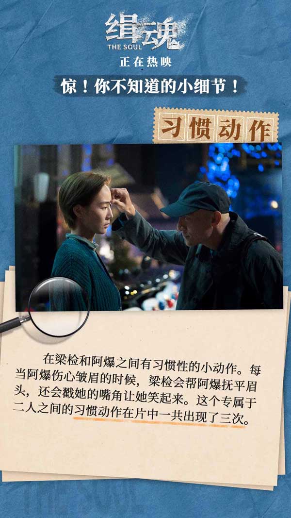 程伟豪打造的一系列细节不仅增强了影片悬念感,还使人物间的情感更为丰富饱满,成功制造多个感人“泪点”。片中每当阿爆伤心皱眉,梁检总会伸手替她抚平眉头,并戳她的嘴角让她微笑,这个专属于二人间的习惯动作在片中共出现三次,既承载了两人的深厚爱意,同时也成为揭开影片最后一道反转谜题的钥匙。网友对此评论道:“温情动作揭示真相,让影片化身‘高级爱情故事’”、“结局升华了全片,感人至深”、“很难不跟着主角一起哭”。