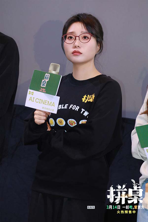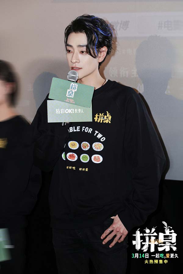 由上影集团领衔出品,张律监制,陈洁担任制片人,吴靖担任编剧并执导,王传君、江疏影领衔主演,李雪琴、郑云龙、傅首尔、刘佳主演,王彩平、杜家毅特邀出演,吴冕、白举纲、田野(老四)特别出演,田小洁、罗海琼、齐溪、许龄月、葵葵友情出演的电影《拼桌》,于3月12日在上海举行“好好吃,好好爱”主题首映礼及路演活动。编剧兼导演吴靖携领衔主演王传君、江疏影,主演李雪琴、郑云龙等主创悉数亮相。映后互动环节,主创团队熟人局欢乐满满,与观众热情交流,全员诚挚分享创作心路,详解美食与爱的链接。电影将生活的美好落点于一餐一饭中,向观众传达“爱人先爱己”的内核,收获了观众与嘉宾们的一致好评,现场观众情绪高涨,高能整活掌声不断。电影将于3月14日白色情人节全国上映,当前火热预售中,敬请期待!
