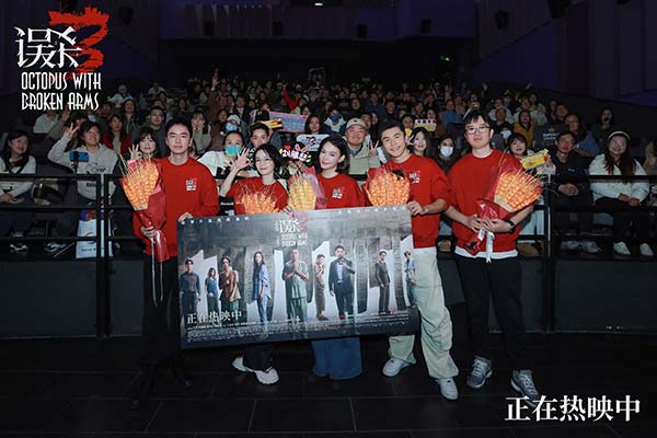 犯罪悬疑电影《误杀3》正在好评热映中,全新发布的“大幕拉开”正片片段中的这场舞台剧犹如预言,藏着诸多细节和隐喻,也暗示了章鱼的动物意向与整部电影的关联。12月31日,导演甘剑宇和演员刘雅瑟、张榕容、陈昊,制片人马峥现身重庆路演现场,段奕宏也以现场连线形式跟路演队伍“汇合”,与片中饰演夫妻却没有对手戏的张榕容首次同框。电影《误杀3》由陈思诚编剧/监制,甘剑宇执导,肖央、佟丽娅、段奕宏、刘雅瑟领衔主演,王龙正、冯兵、周楚濋、徐诣帆主演,高捷、尹子维特别出演,张榕容、卢慧敏友情出演。影片正在热映中,解气解恨燃爆开年。