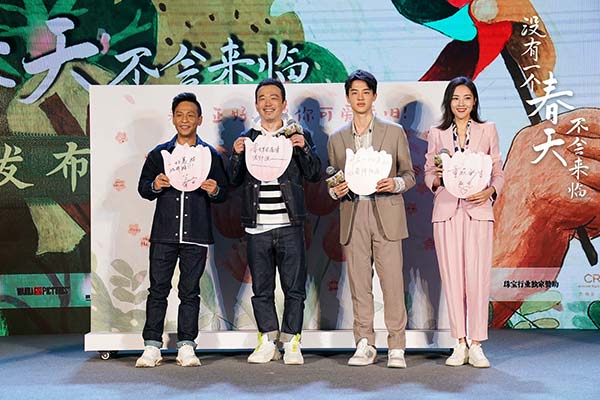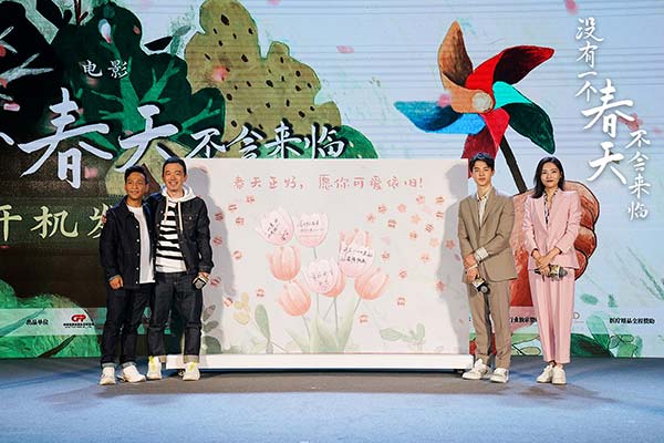 走过2020年的寒冬,2021年的春天又是新生的开始。黄渤在现场看到反向转动的风车后更动情吐露:“去年全国人民懊糟了一个冬天,我被困家里的时候偶然发现了树枝上发出的嫩芽,就像是春天带来的希望。大屏幕上反向转动的风车,寓意着疫情下我们集结在一起逆风而行。“而到场的四位主演宋小宝、潘斌龙、尹昉、郑罗茜则用自己的方式表达了对春天来临的喜悦,宋小宝表示非常希望拍好这部电影,“这是我人生的一次突破。是一切美好的开始”;潘斌龙表示在电影中演的不是一个人,而是一群人,一群有爱的人,这是特别骄傲的事情。尹昉说到自己的角色告诉大家:“我拍摄的是一个爱情故事,我看剧本时候特别被这个故事打动,在危难中去见证爱情,去经受所有的磨难,这对我来讲是一次非常有挑战的经历。”同时献上自己对春天的寄语“开启一切美好,和爱情相遇!”郑罗茜则非常荣幸和自豪地饰演了一位医务工作者,“我觉得非常荣幸和自豪,我能够把这么一个无名英雄的群体,在电影里做一个传达,我觉得非常非常荣幸。感恩!”没有一个春天不会来临,总有一个人会为你负重前行,电影在重温艰难时光的同时,以期带给大家温暖与力量。