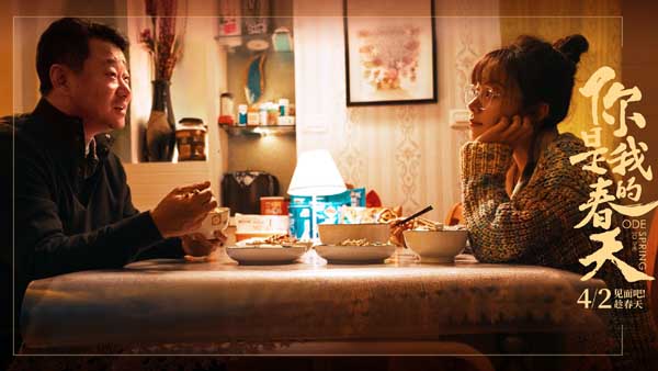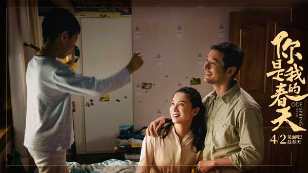 尽管二人不止一次担心风险太大,但是还是下定决心背着老人去向医院,诠释了陌生人之间的温暖相遇。社区书记老王(王景春饰演)在为封闭小区里的居民服务时,与大家从陌生到熟悉,得到了大家的理解与尊敬,其中也包括由于母亲奋战在抗疫一线而独居在家的小麦(赵今麦饰演)。当书记不得不暂离岗位时,小麦与全体居民为他送行,以手机闪光灯亮起了一片“星空”,期盼着书记平安归来后再见面。龚臣(黄超饰演)与杨珊(杨斯饰演)夫妻俩各自身着冷色的防护服在医院奔波与“死神”抗争,却始终坚持着意志在春天的暖色里相会;妻子王雅尔(宋佳饰演)离家援鄂,丈夫李敬(黄晓明饰演)留在四川独自照顾儿子,却在地震中被“儿子”乐乐(张航诚饰演)泼了一脸方便面,被网友戏称“黄晓明变黄浇明”,这一“父慈子孝”的诙谐场景,透露着一位父亲对孩子略显“笨拙”的爱意,也在等待一家重逢的日子里拉近了父子之间的关系。每个人都带着见面的希望和理由,也期待着4月2日在影院与每一位观众相见!