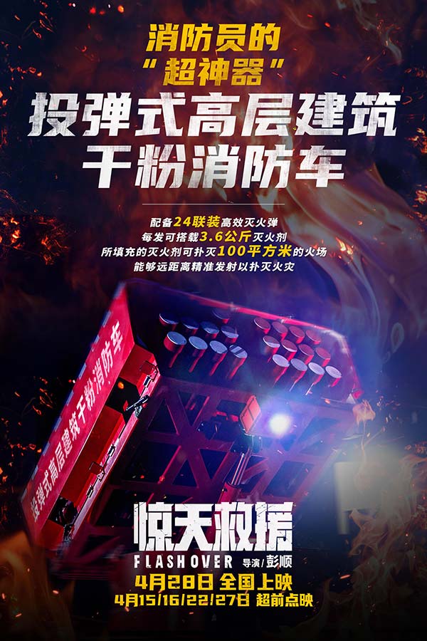 随制作特辑同时释出的“救援新力量”海报也格外吸睛夺目,无人机、“暴雪”“水龙”灭火机器人、全覆盖电磁炮、投弹式高层建筑干粉消防车等全新救援设备在火光四溅的背景中震撼登场,这也是它们首次亮相国内大银幕。演员王千源在采访中提到:“新型救援设备能冲进消防员难以抵达的危险地带。”救援设备的不断升级,将大大提高救援效率,减少消防救援人员及被困群众受伤的可能。面对来势凶猛的化工爆炸,人机将如何实现协同作战,守护全城百姓?这个五一,让我们拭目以待!