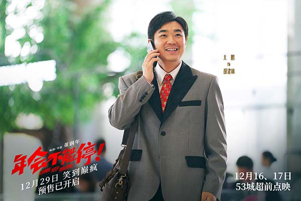 电影《年会不能停!》由北京嘉映春天影业有限公司、中青新影文化传媒(海南)有限公司、华夏电影发行有限责任公司、天津猫眼微影文化传媒有限公司、潇湘电影集团有限公司、上海有态度文化传播有限公司、中国电影股份有限公司、上海淘票票影视文化有限公司出品;由北京嘉映电影发行有限公司、湖南当燃影业有限公司、北京光景映画电影有限公司、宁波合众睿客影视文化有限公司、上海儒意影视制作有限公司、上海他城影业有限公司、北京微梦创科网络技术有限公司联合出品,将于12月29日跨年档爆笑上映,正在火热预售中。