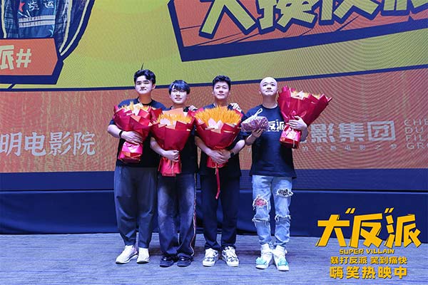 对于这部反转不断、嗨爽刺激的喜剧作品,成都观众持续奉上“滚烫”的好评,赞誉声不绝于耳。有人感叹“看这部电影就像吃火锅一样爽”,有人坦言影片密集的笑点让自己暂时将工作的烦恼全抛开,也有观众直言影片给自己带来了很深的触动:“这部作品令我感到惊喜,它是很有深度的喜剧,在告诉我们做人做事的道理的同时,也劝诫大家要珍惜身边人。”《一年一度喜剧大赛2》成员宇文秋实前来观影,点赞影片“设定、包袱很出彩,也有作者化的情感表达,看得很愉快”。一位沉浸式剧场的演员分享了自己对表演的热爱,表示从影片里毕超的故事中得到启发,希望能够与包贝尔合影留念,而包贝尔也满足了他的心愿,并为所有观众送上鼓励:“如果你有梦想,就去追逐吧,总有一天会实现它。”